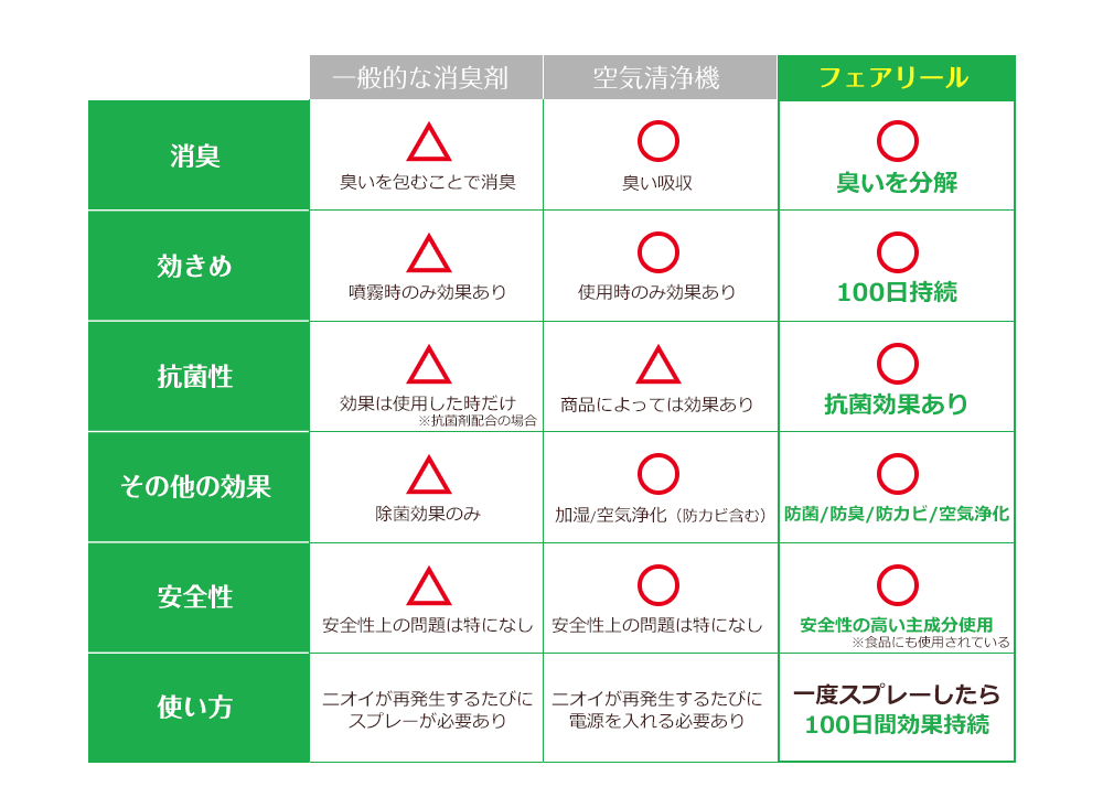 そんな時知人から「フェアリール」を勧められ、早速防具に吹き付けてみたところ、みるみるうちにいやなにおいが薄らいでいき、大変驚きました。